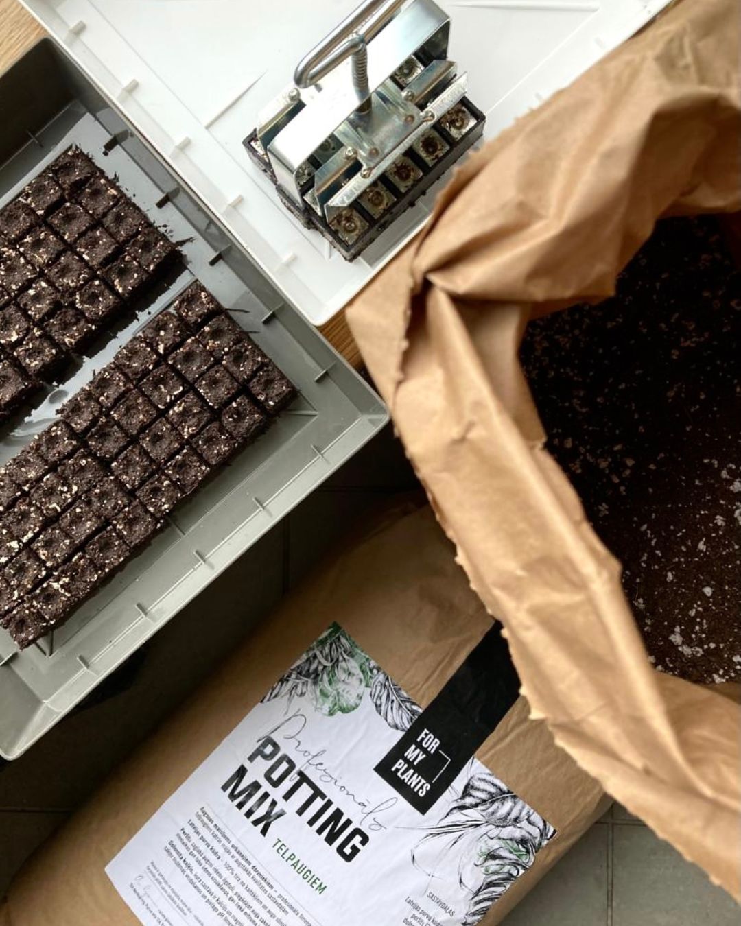 Piemērots lietošanai ar augsnes bloku veidotāju (soil-blockers).